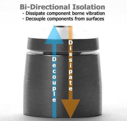 This is a review of the StillPoints Ultra SS (stainless steel) isolation feet, which are the culmination of ball devices. The basic idea here is that one ball sitting on several balls, especially if it is just about to fall between the lower balls, has a very substantial horizontal vector and a very small vertical vector. Once the vibrations are in the horizontal plane, they are merely dissipated into some restraint that converts it into heat.